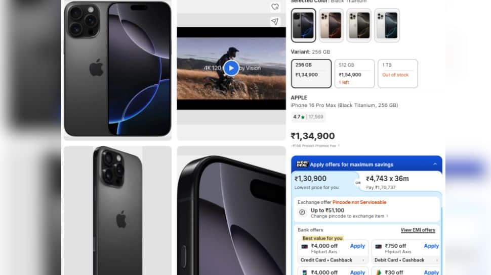 The official price of the iPhone 16 Pro Max in India starts at Rs 1,34,900 for the 256GB variant. However, buyers can currently save money through offers available on Flipkart. The platform is providing an instant discount of Rs 4,000 on select bank credit cards, bringing the price down further.